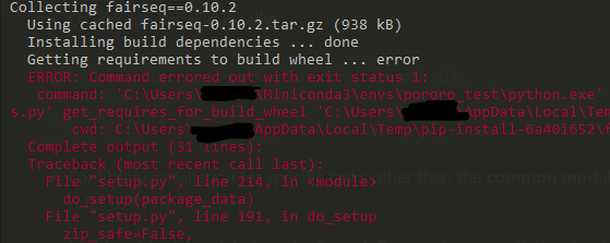 하지만 실패! fairseq 를 설치하는 과정에서 에러가 났다.