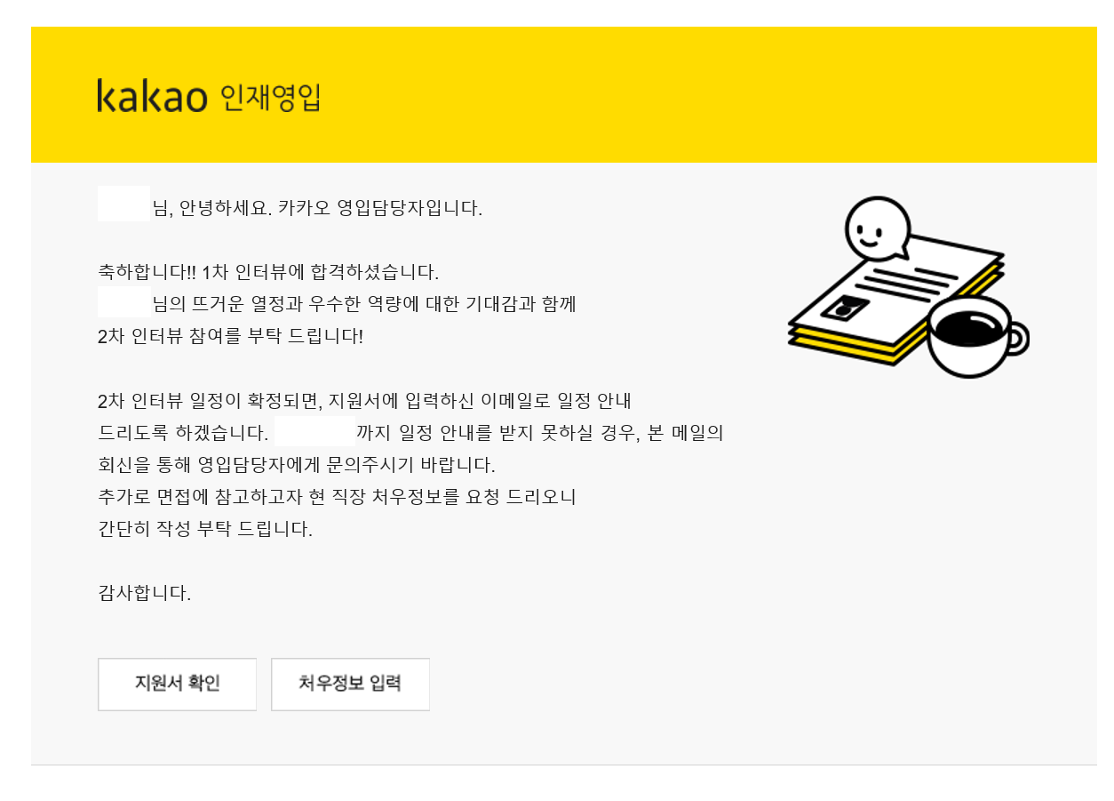 그리고 카카오 1차 면접 합격.