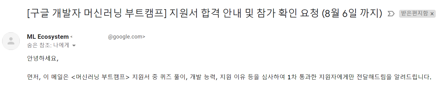 구글 머신러닝 부트캠프 2기 합격.
