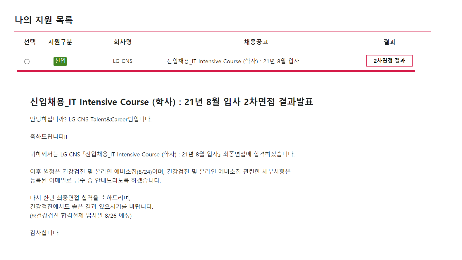 그렇게 LG CNS를 합격하게 된다.